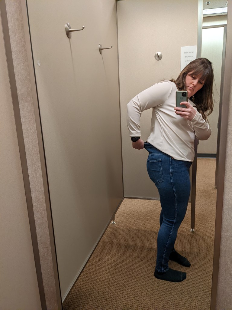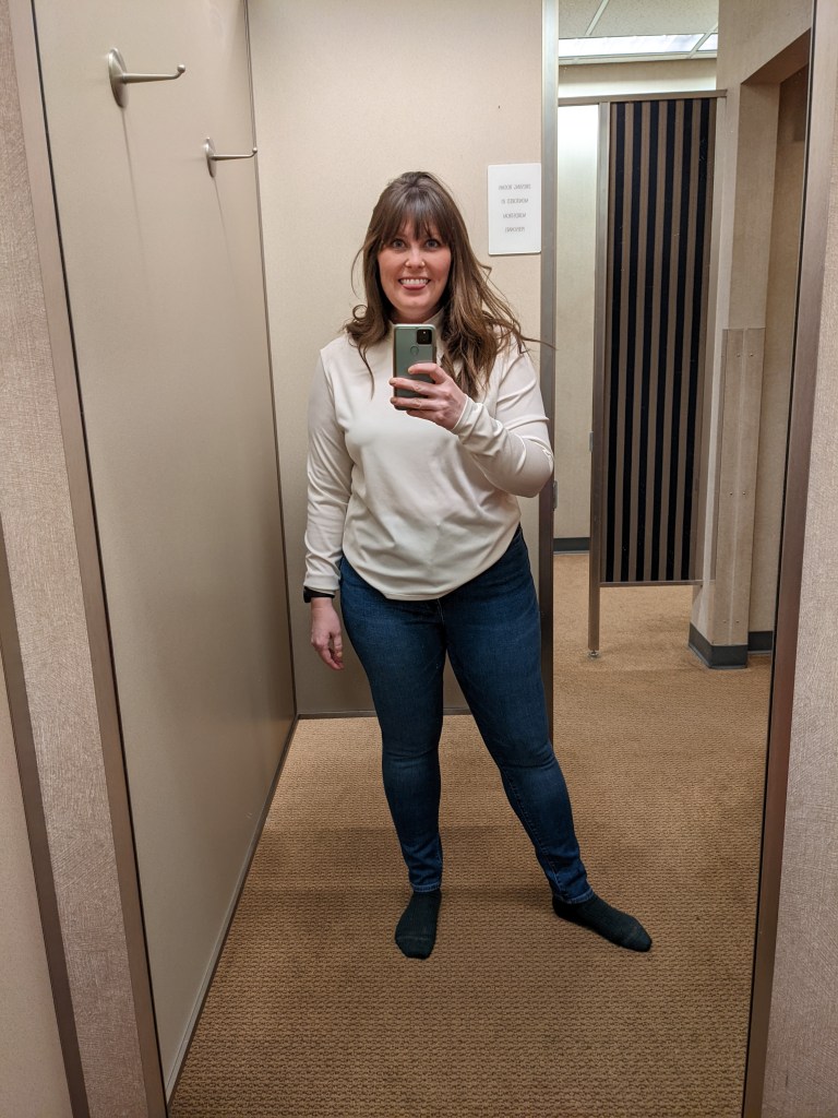 Can I just pause here and say doubting yourself really sucks? Because of my self-doubt, it took me several days to get the nerve to try these new and improved jeans on. FINALLY, I did. And… they were perfect. And even with wearing, still perfect. I somehow even look better IN the jeans? Because they just fit right.